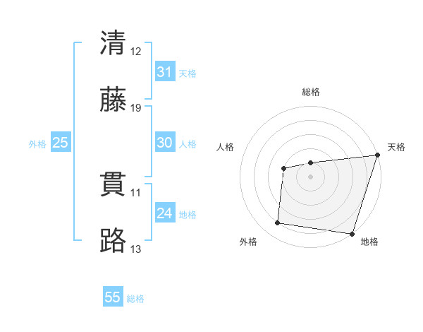 清藤 貫路さんの天格は31画の5点!