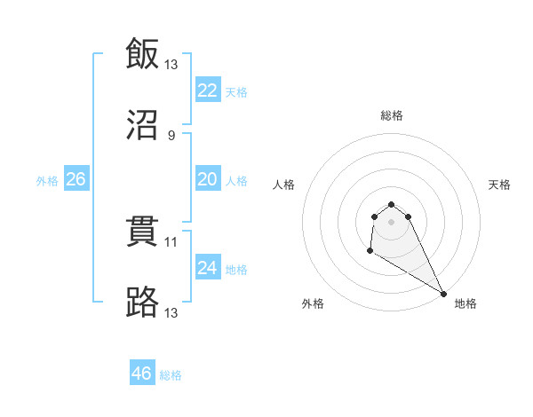 飯沼 貫路さんの地格は24画の5点!
