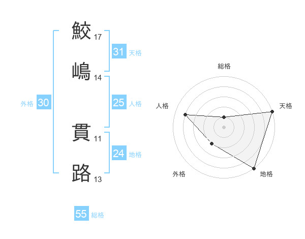 鮫嶋 貫路さんを姓名の画数から五運を鑑定