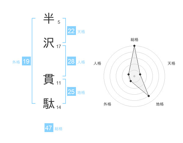 半沢 貫駄さんの総格は47画の5点!