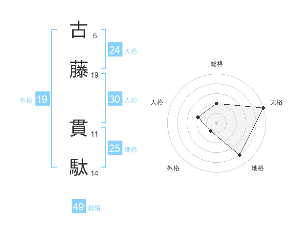古藤 貫駄さんの天格は24画の5点!