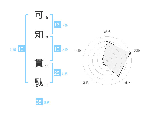 可知 貫駄さんの総格は38画の4点!