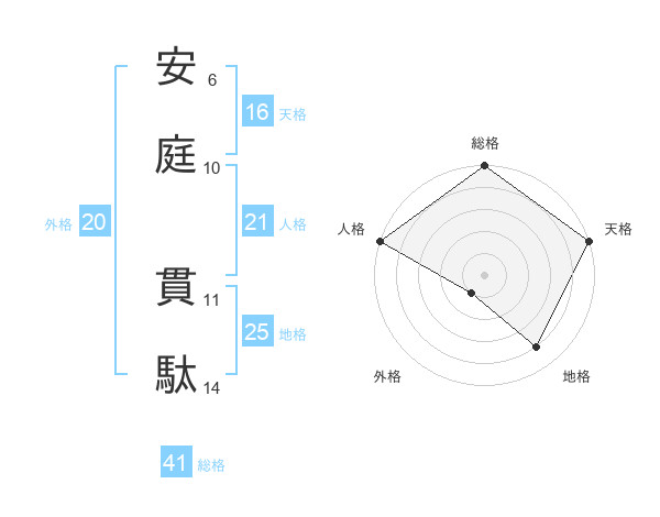 安庭 貫駄さんの総格は41画の5点!