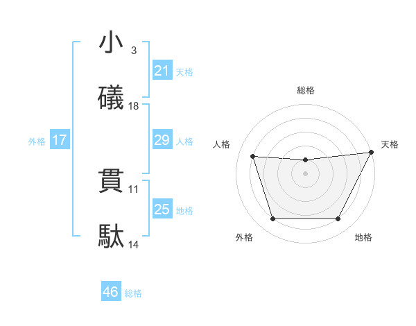 小礒 貫駄さんの天格は21画の5点!