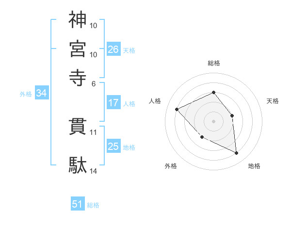 神宮寺 貫駄さんを姓名の画数から五運を鑑定