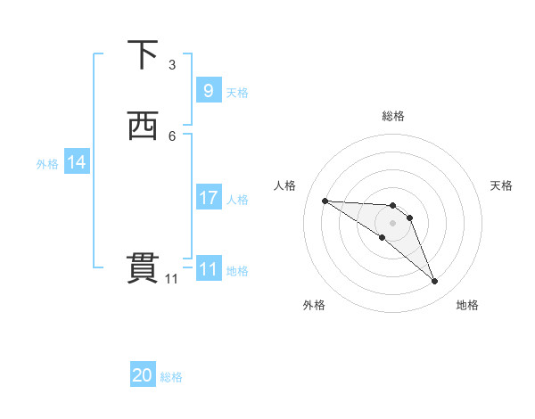 下西 貫さんの総格は20画の1点!