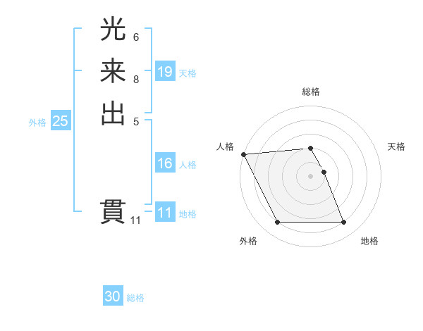 光来出 貫さんの総格は30画の2点!