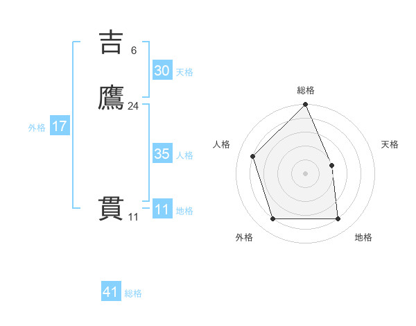 吉鷹 貫さんの総格は41画の5点!