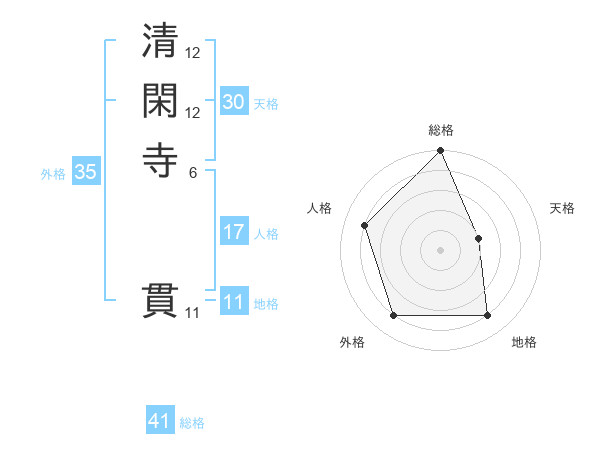 清閑寺 貫さんの総格は41画の5点!