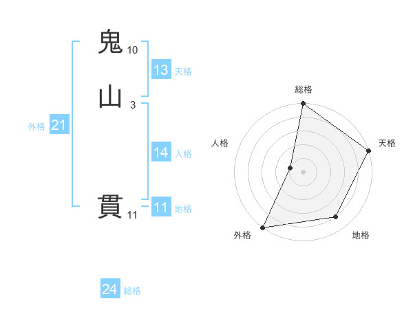 鬼山 貫さんを姓名の画数から五運を鑑定