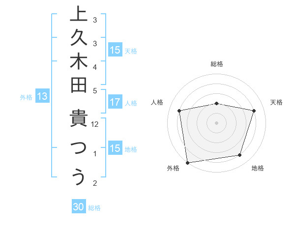 上久木田 貴つうさんを姓名の画数から五運を鑑定