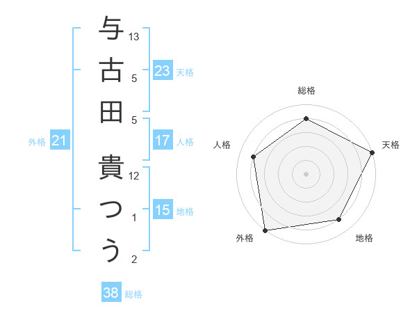 与古田 貴つうさんを姓名の画数から五運を鑑定