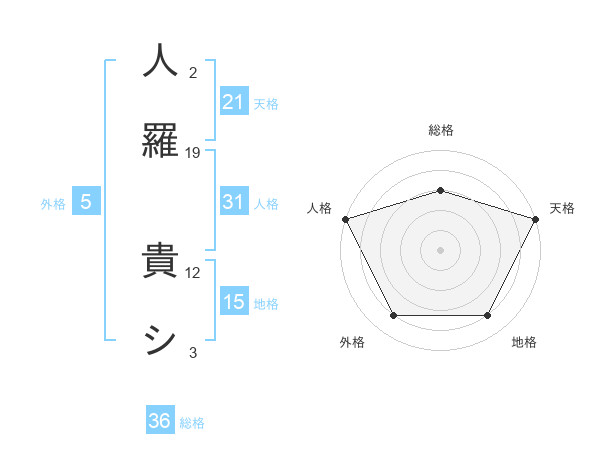 人羅 貴シさんを姓名の画数から五運を鑑定