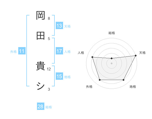 岡田 貴シさんの天格は13画の5点!