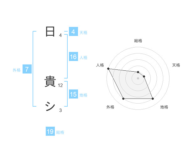日 貴シさんの総格は19画の1点!