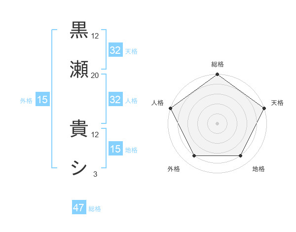 黒瀬 貴シさんの天格は32画の5点!