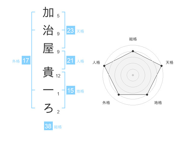 加治屋 貴一ろさんを姓名の画数から五運を鑑定
