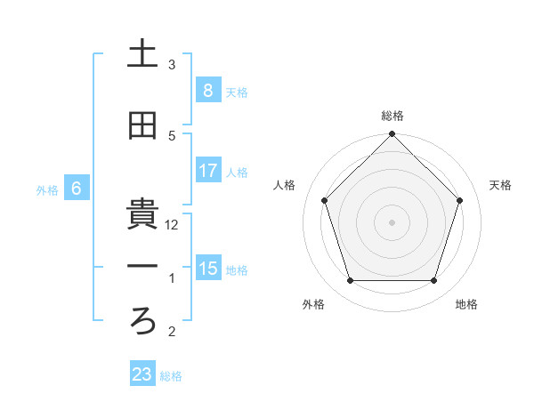 土田 貴一ろさんを姓名の画数から五運を鑑定