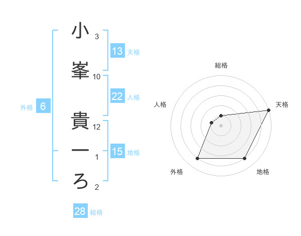 小峯 貴一ろさんの天格は13画の5点!