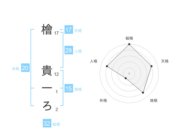 檜 貴一ろさんを姓名の画数から五運を鑑定
