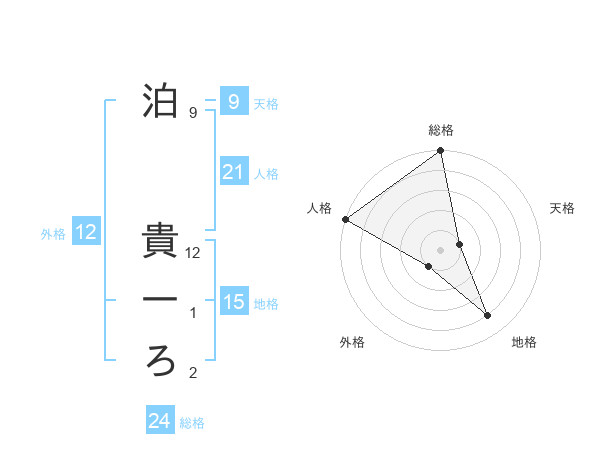 泊 貴一ろさんの総格は24画の5点!