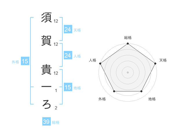 須賀 貴一ろさんを姓名の画数から五運を鑑定