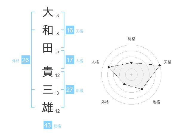 大和田 貴三雄さんの総格は43画の2点!