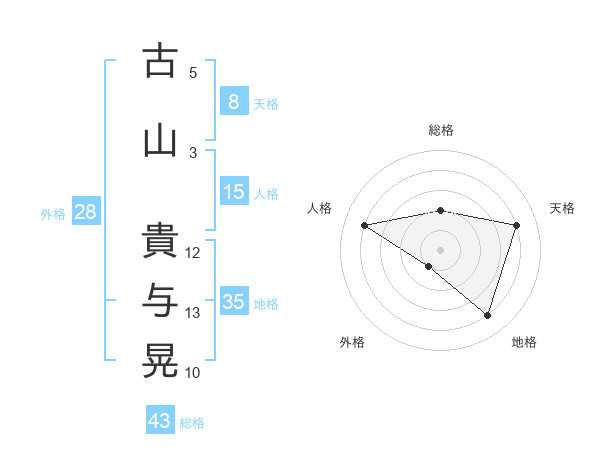 古山 貴与晃さんを姓名の画数から五運を鑑定