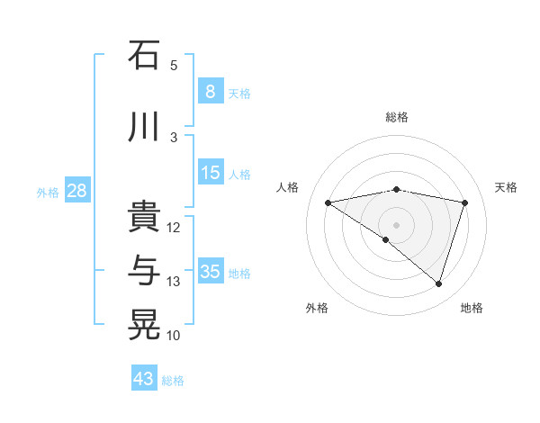 石川 貴与晃さんを姓名の画数から五運を鑑定