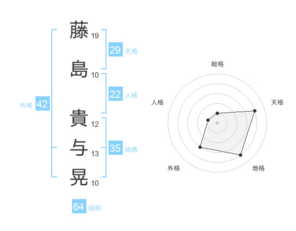 藤島 貴与晃さんを姓名の画数から五運を鑑定