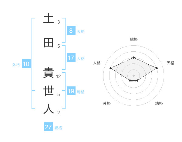 土田 貴世人さんを姓名の画数から五運を鑑定