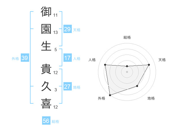 御園生 貴久喜さんを姓名の画数から五運を鑑定