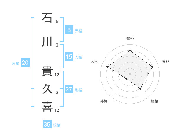 石川 貴久喜さんを姓名の画数から五運を鑑定