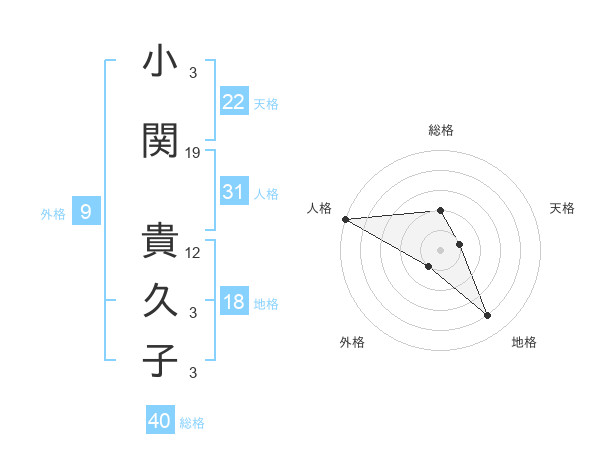 小関 貴久子さんを姓名の画数から五運を鑑定