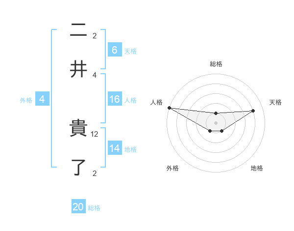 二井 貴了さんの天格は6画の4点!