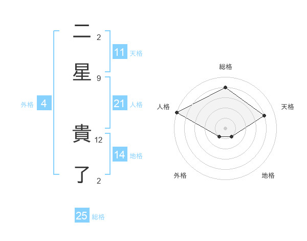 二星 貴了さんの総格は25画の4点!