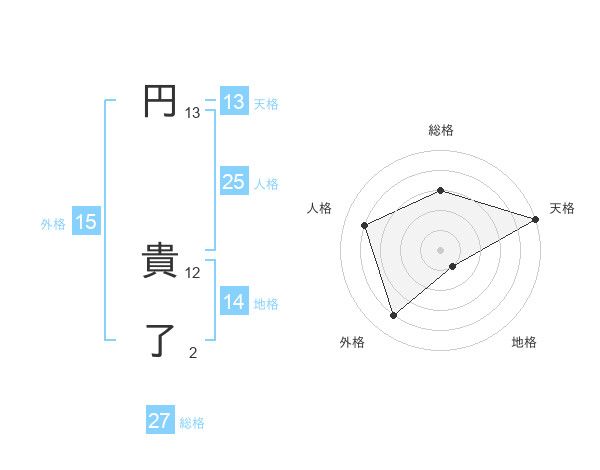 円 貴了さんの天格は13画の5点!