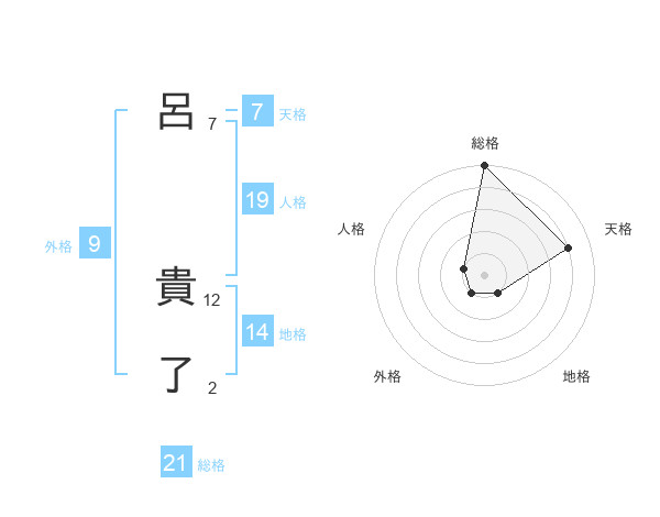 呂 貴了さんの総格は21画の5点!