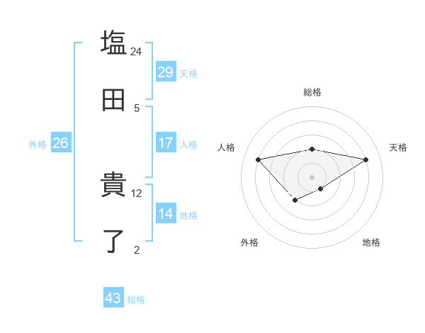 塩田 貴了さんの外格は26画の2点!