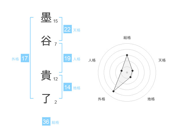 墨谷 貴了さんを姓名の画数から五運を鑑定