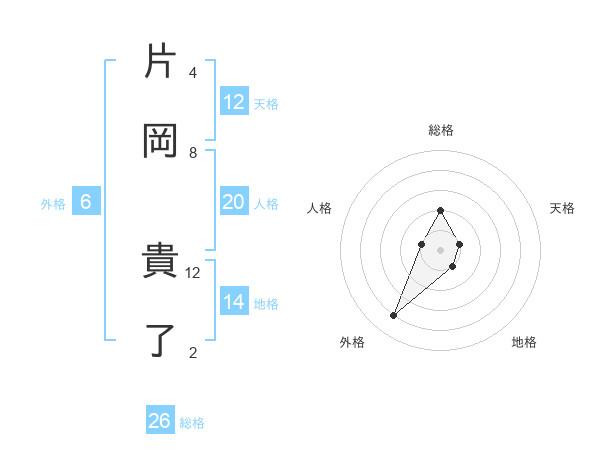 片岡 貴了さんを姓名の画数から五運を鑑定