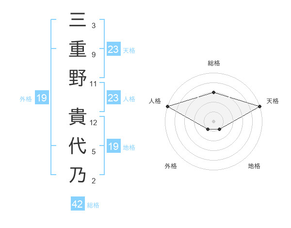 三重野 貴代乃さんを姓名の画数から五運を鑑定