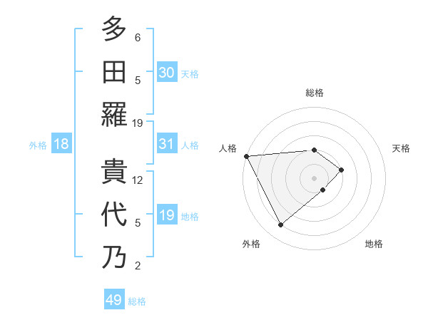 多田羅 貴代乃さんを姓名の画数から五運を鑑定