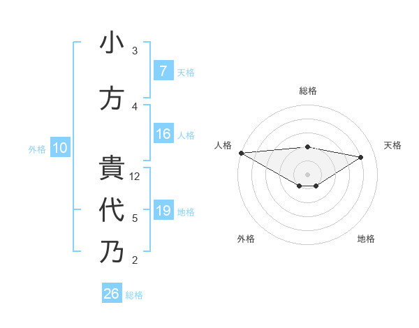 小方 貴代乃さんを姓名の画数から五運を鑑定