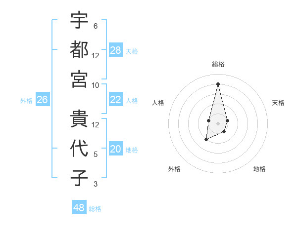 宇都宮 貴代子さんの総格は48画の4点!