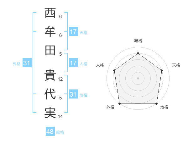 西牟田 貴代実さんを姓名の画数から五運を鑑定