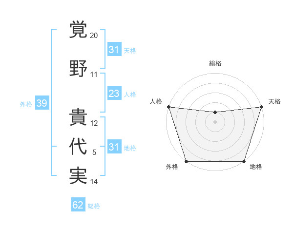 覚野 貴代実さんの天格は31画の5点!