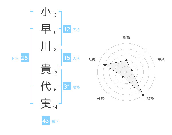 小早川 貴代実さんの総格は43画の2点
