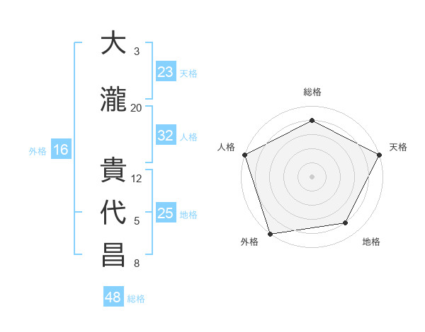 大瀧 貴代昌さんを姓名の画数から五運を鑑定