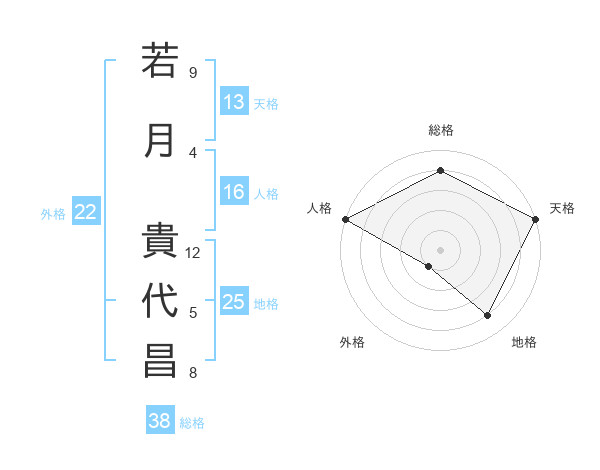 若月 貴代昌さんの天格は13画の5点!